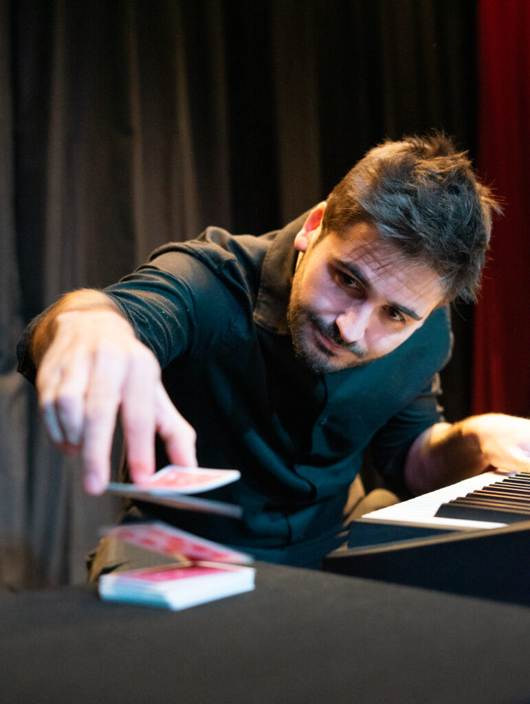 Un show unipersonal donde Samuel Tirado combina sus pasiones, ilusionismo y música. El primer espectáculo de magia y música en directo en el que el pianista y el mago son la misma persona.